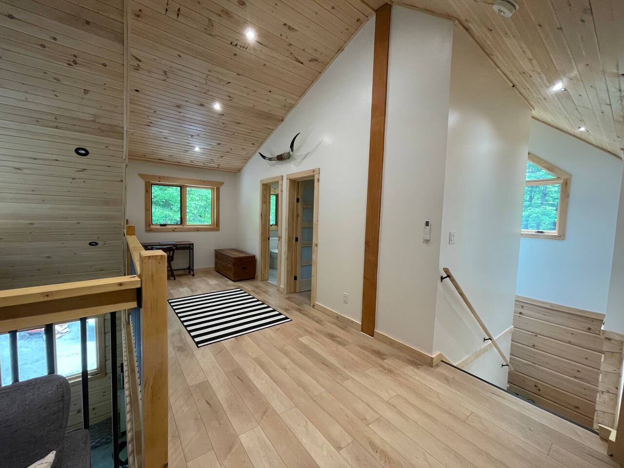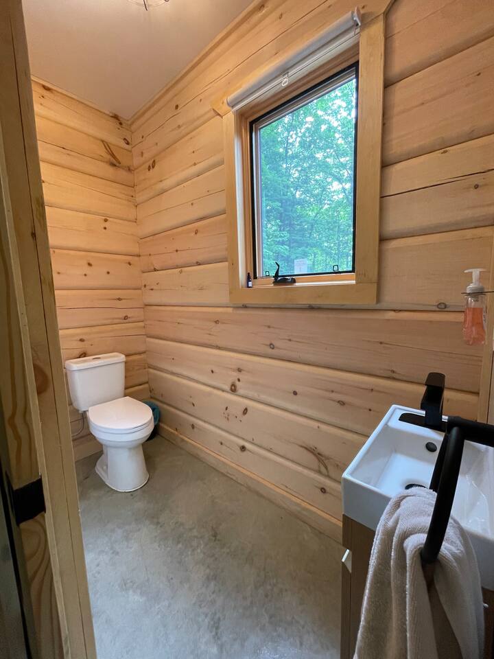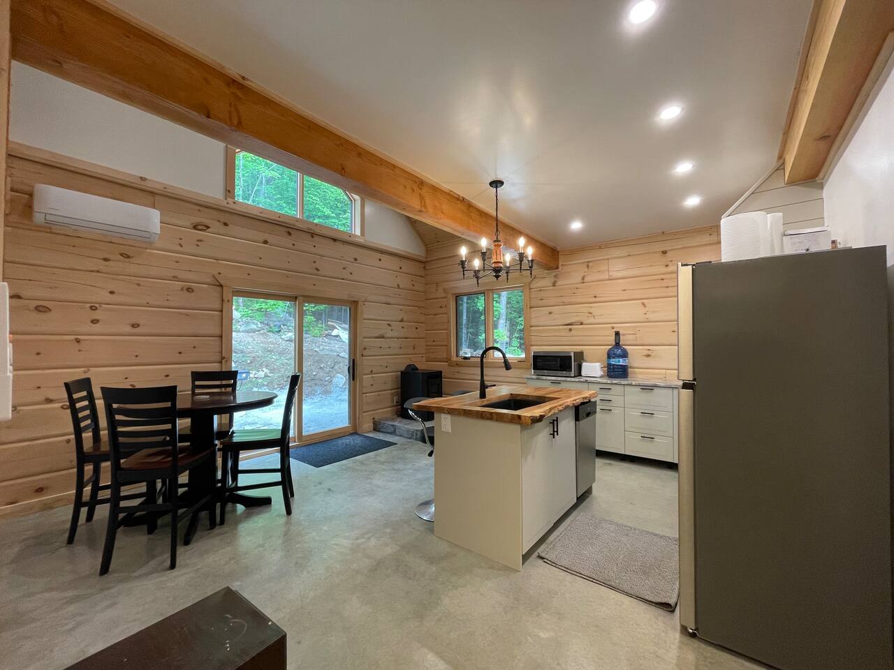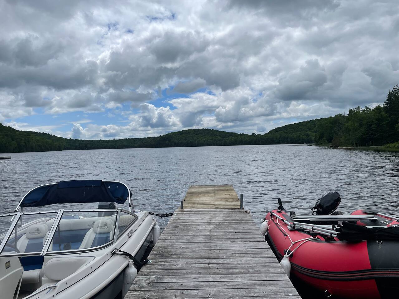 Perfect location. No city noise, no city lights. Beautiful forest and lake. Cabin is brand new. There is a lot of space inside. Fire pit great. Free kayaks and a lot of bass in the lake.