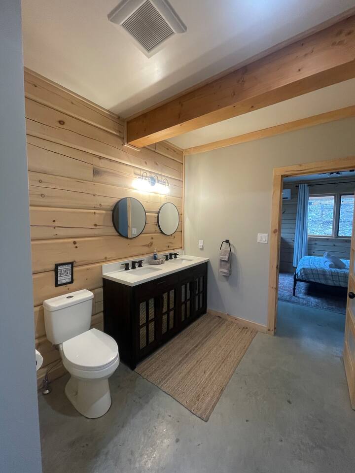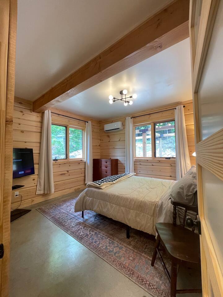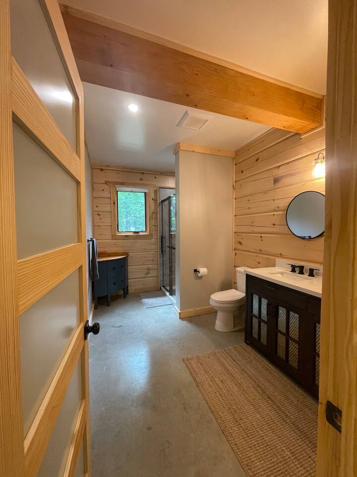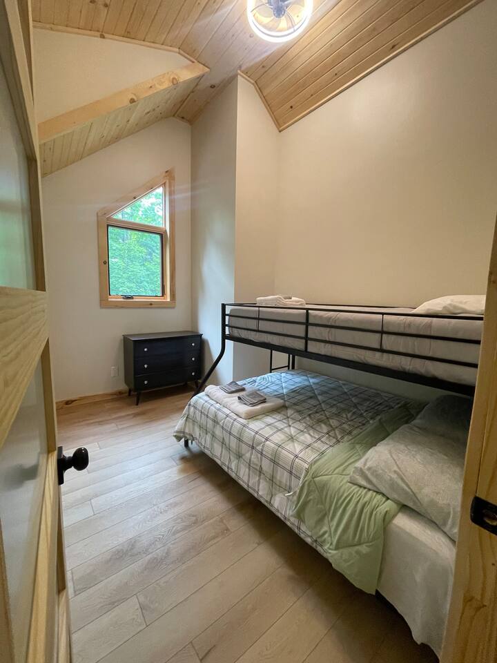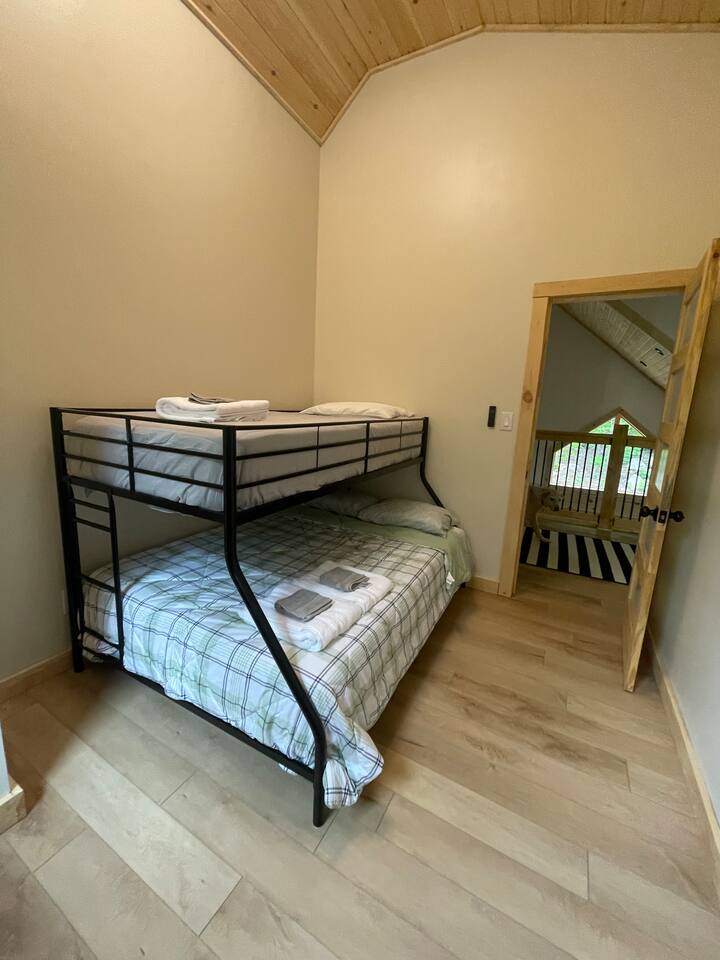 Perfect location. No city noise, no city lights. Beautiful forest and lake. Cabin is brand new. There is a lot of space inside. Fire pit great. Free kayaks and a lot of bass in the lake.