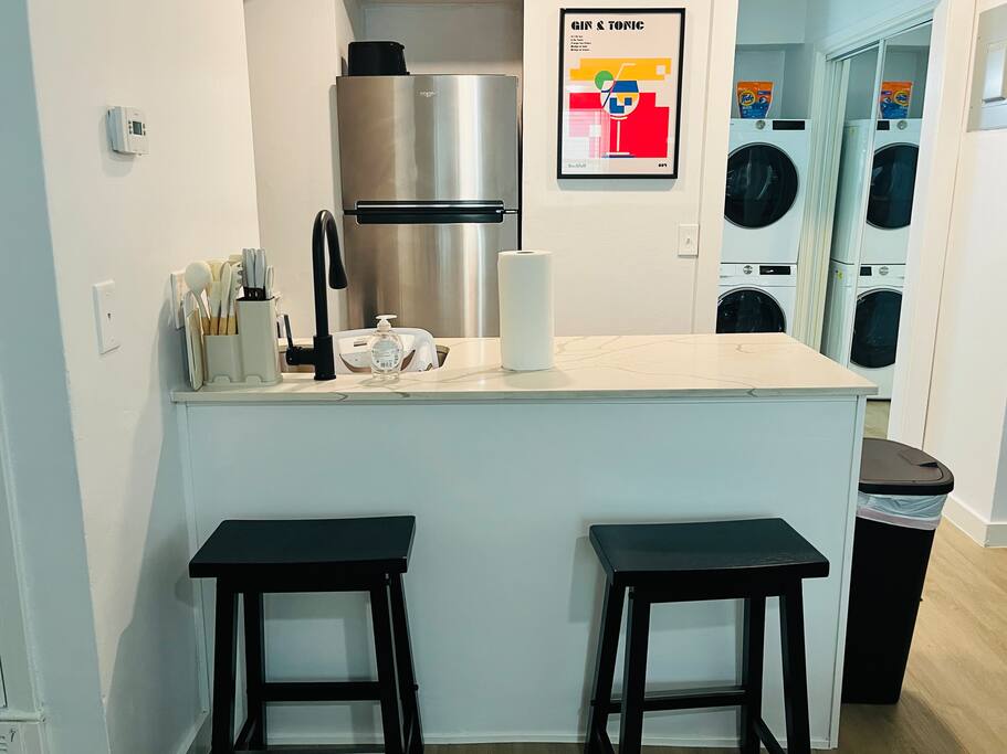 Kitchenette: Equipped with the essentials to get your day started—[mini-fridge, microwave, Keurig/French Press, toaster, electric kettle].