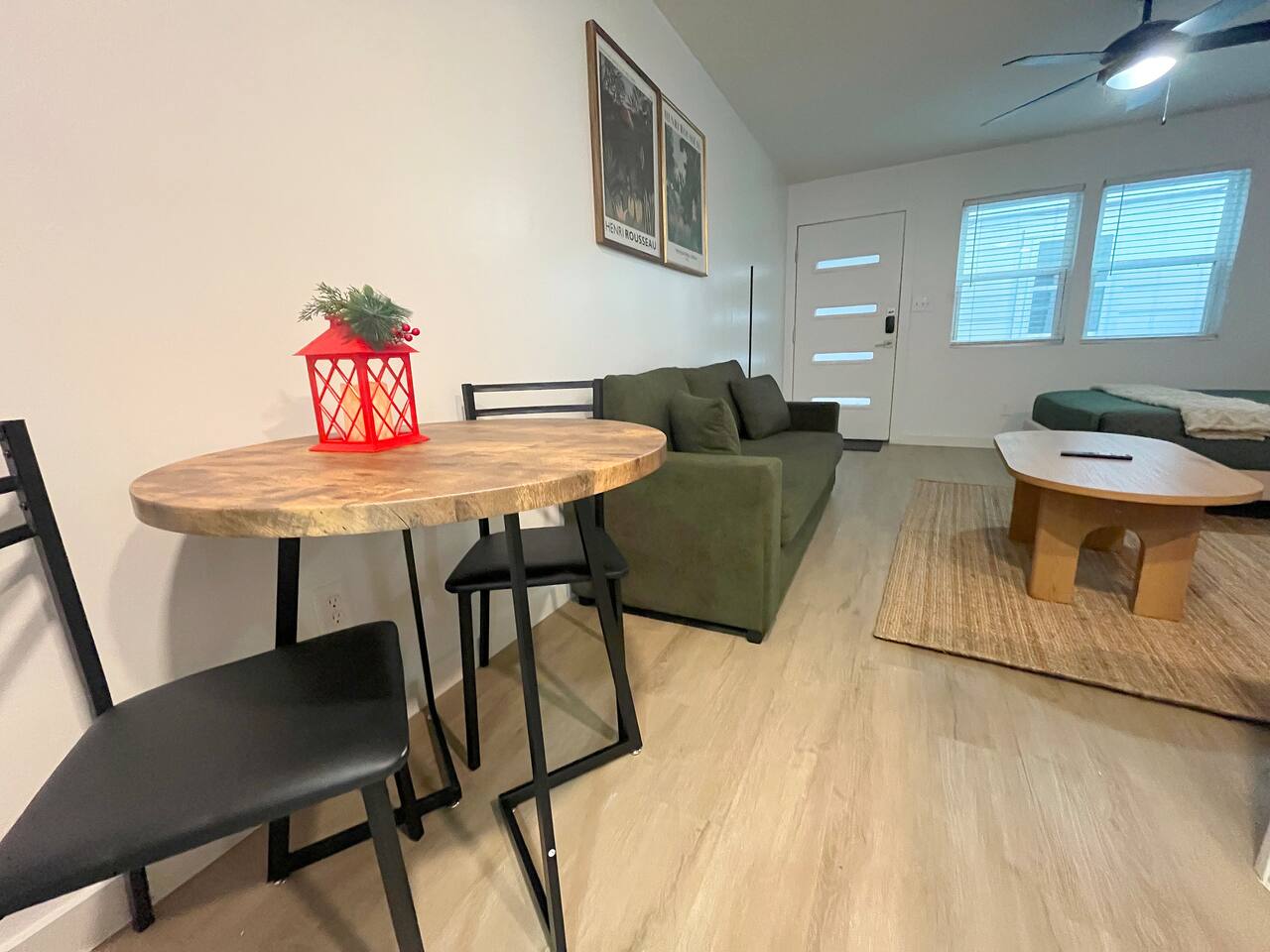Living/Work: A dedicated workspace with high-speed WiFi, perfect for remote work, plus a cozy seating area to unwind with [Smart TV/Streaming Services].